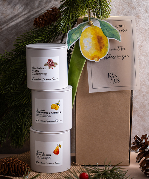 ( Christmas Blend, Lemon Chamomile Vanilla, Honey Pear Lemon )